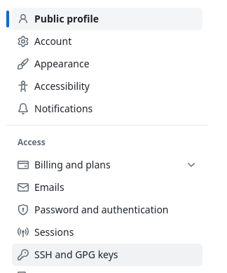- Click SSH and GPG keys on the left
