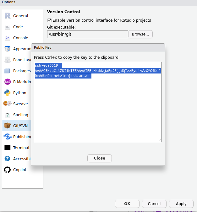 View public keyin theOptionswindow.