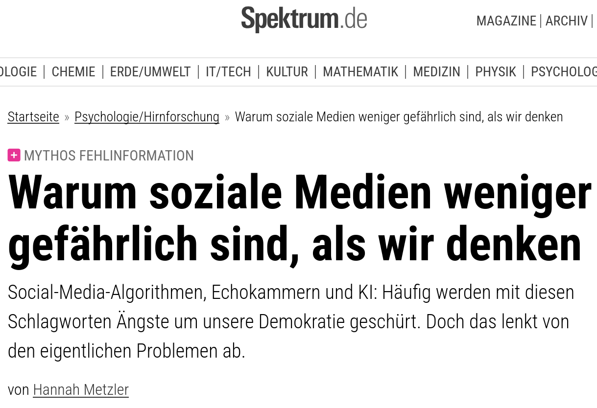 \(\rightarrow\) Social Media tragen zur gefühlten Polarisierung bei